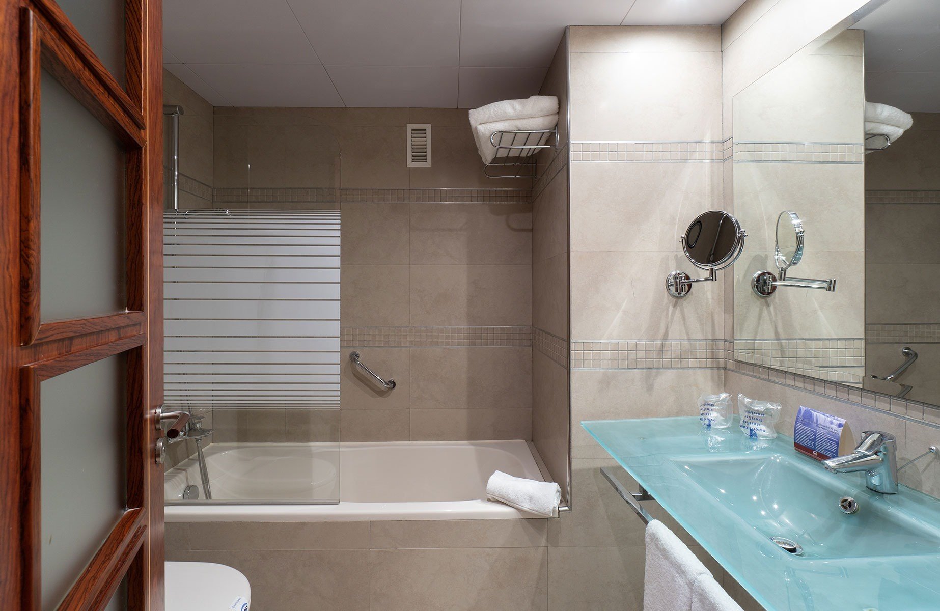 A Double Room is equipped with a direct line telephone, mini bar, television (with Canal+), air conditioning, free safety deposit box, free WiFi and full bathroom (with hair dryer, magnifying mirror and toiletries). All of our rooms have a terrace
